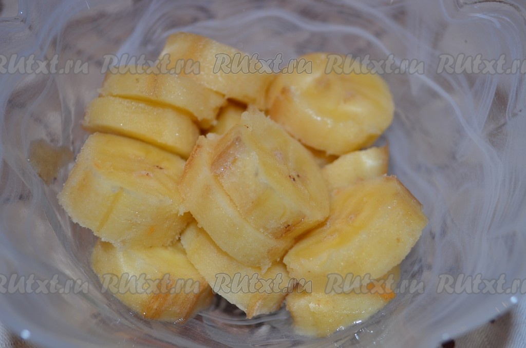 Замороженный банан очистить, порезать.