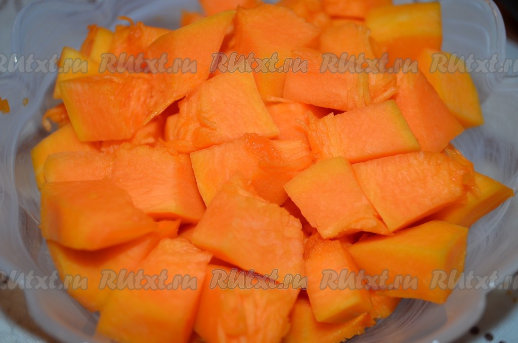 Тыкву порезать кубиками, отварить в течение 15 минут.