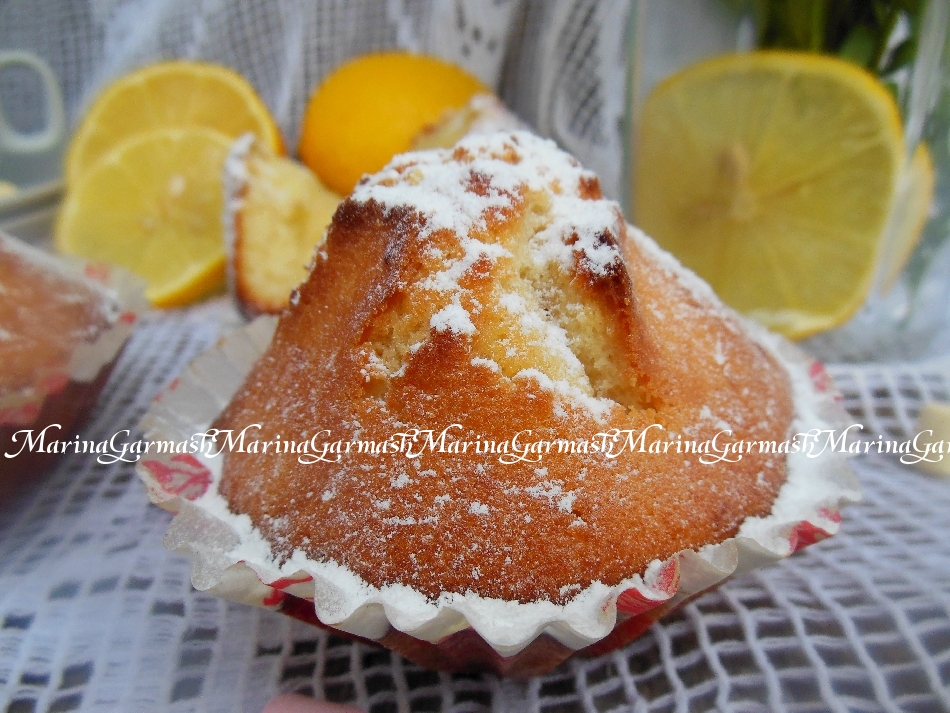 Достаньте готовые лимонные кексы из духовки, остудите, выньте из формочек (я оставила в бумажных формочках) и посыпьте сахарной пудрой. А затем ароматную, вкусную, в меру влажную выпечку подайте к столу.