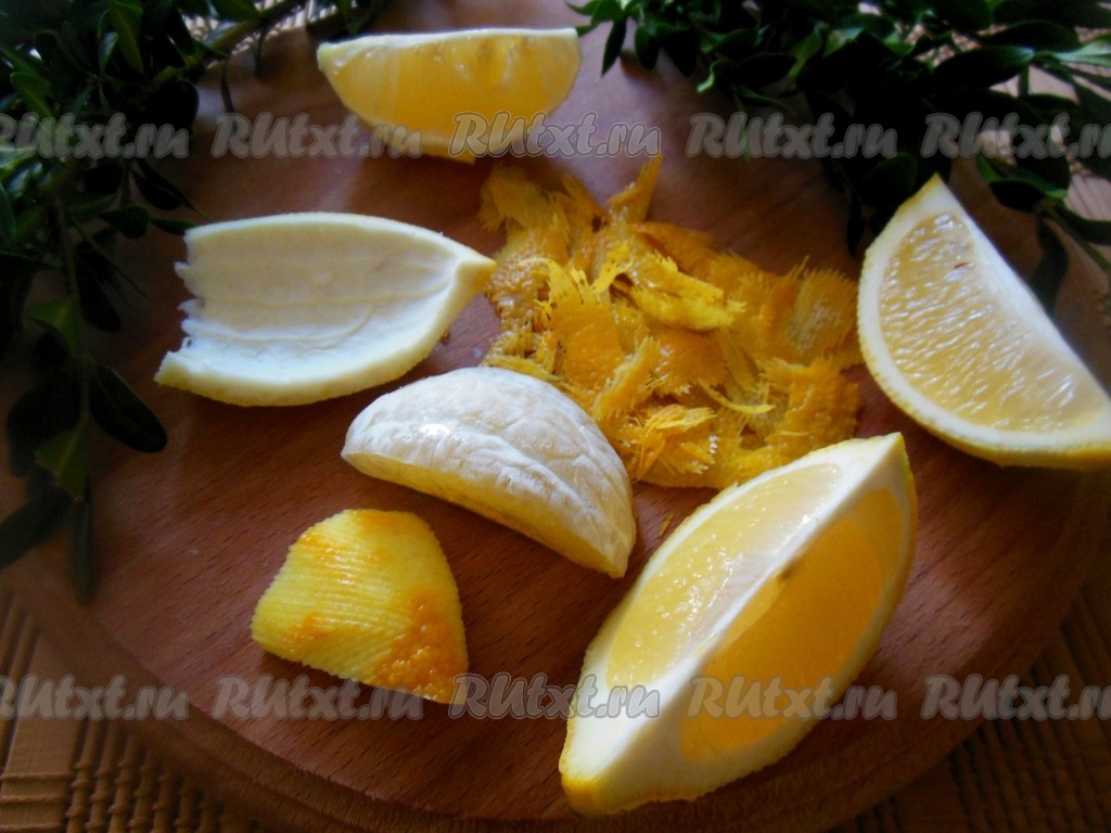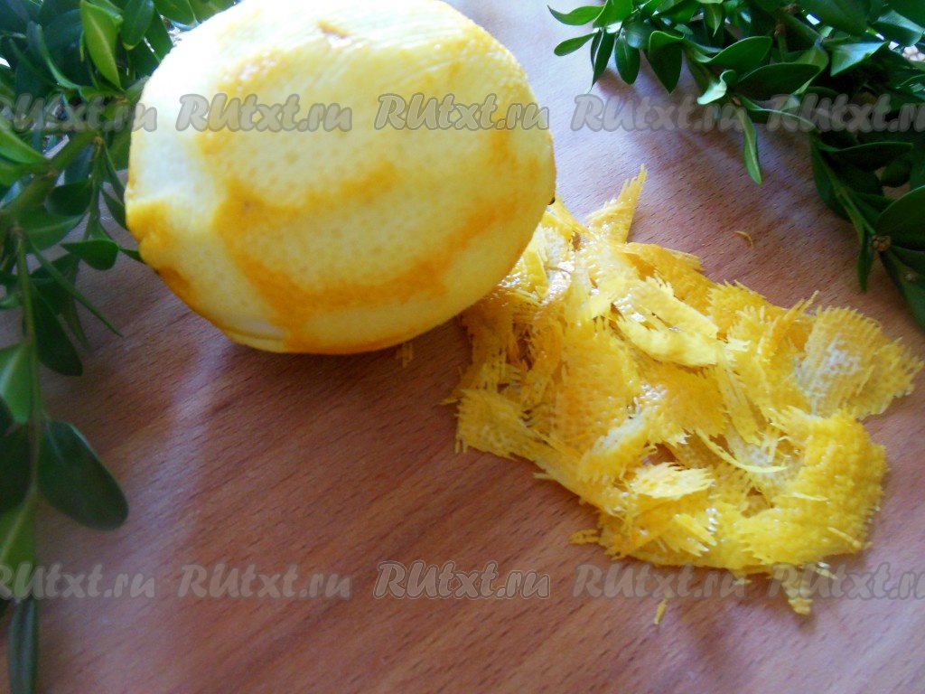 Лимон обдайте кипятком, обсушите, снимите жёлтую цедру, стараясь не затрагивать, находящийся под ней белый слой (я снимала цедру при помощи экономного ножа).