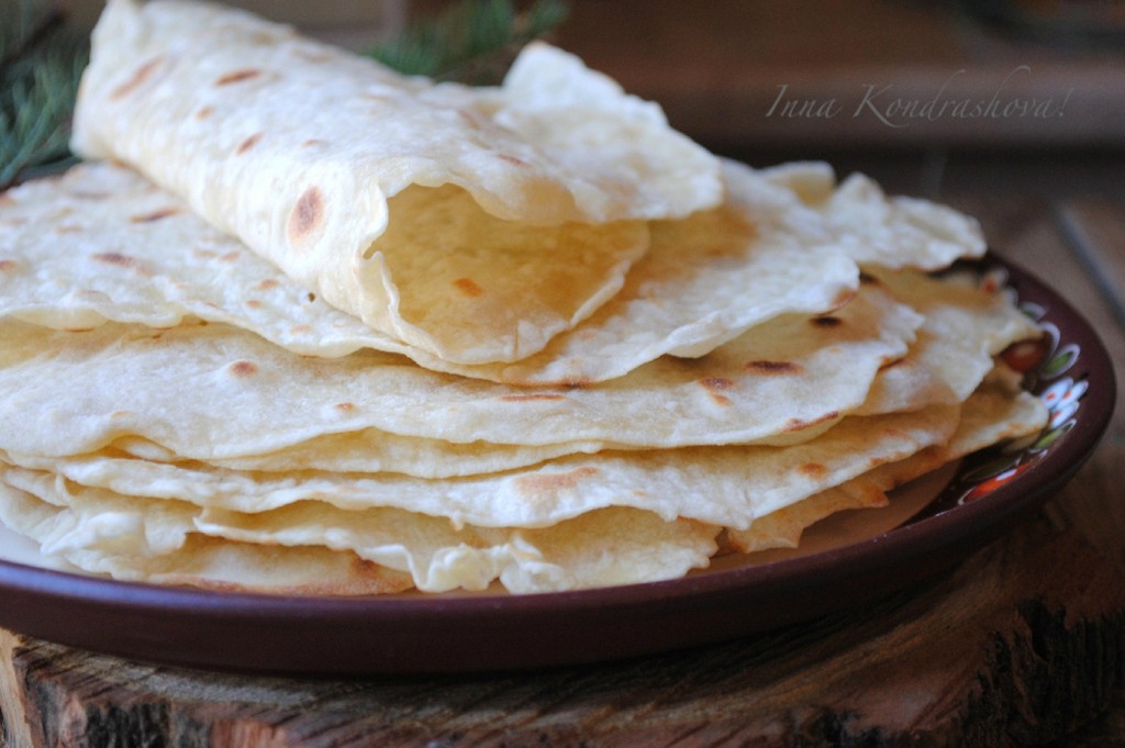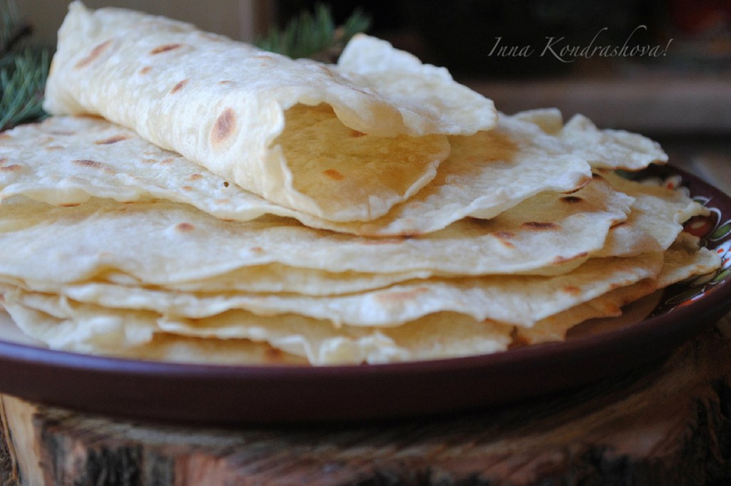 Тонкая лепёшка из кукурузной или пшеничной муки - тортилья - является основой для многих блюд мексиканской кухни. Сегодня я хочу поделиться рецептом пшеничной тортильи, в такую лепёшку можно завернуть различную начинку или подавать вместо хлеба.