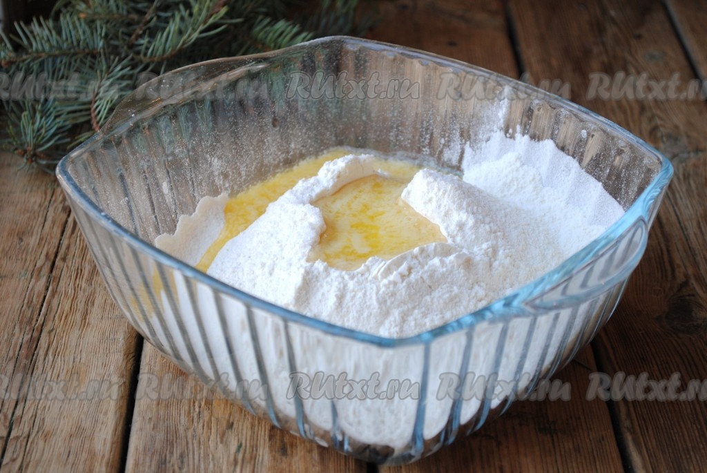 Добавить к муке соль, влить растопленное остывшее сливочное масло, получившуюся массу перетереть руками, чтобы получилась крошка.