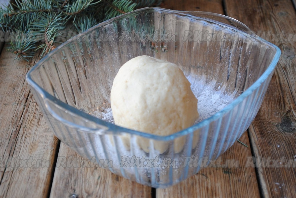 Тесто замотать в пищевую плёнку и оставить отдохнуть при комнатной температуре на 30 минут. Затем тесто разделить на 8 равных частей.