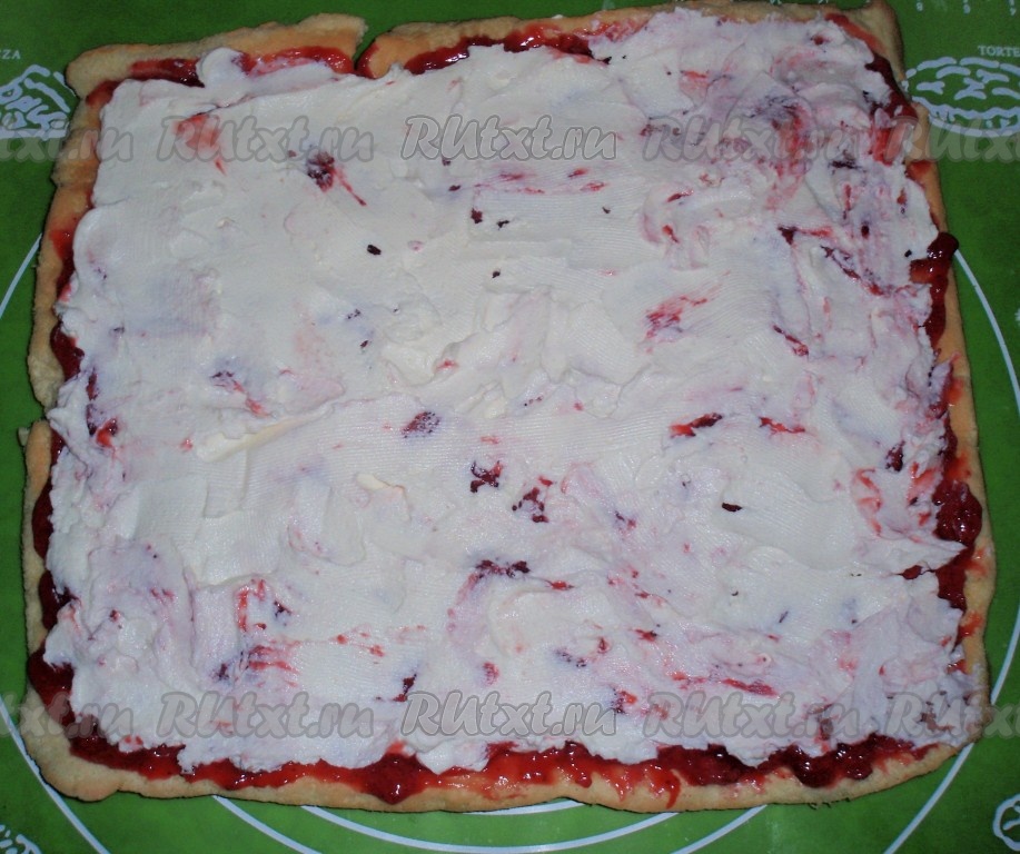 Сверху ровным слоем выложить 3/4 сливочного крема.