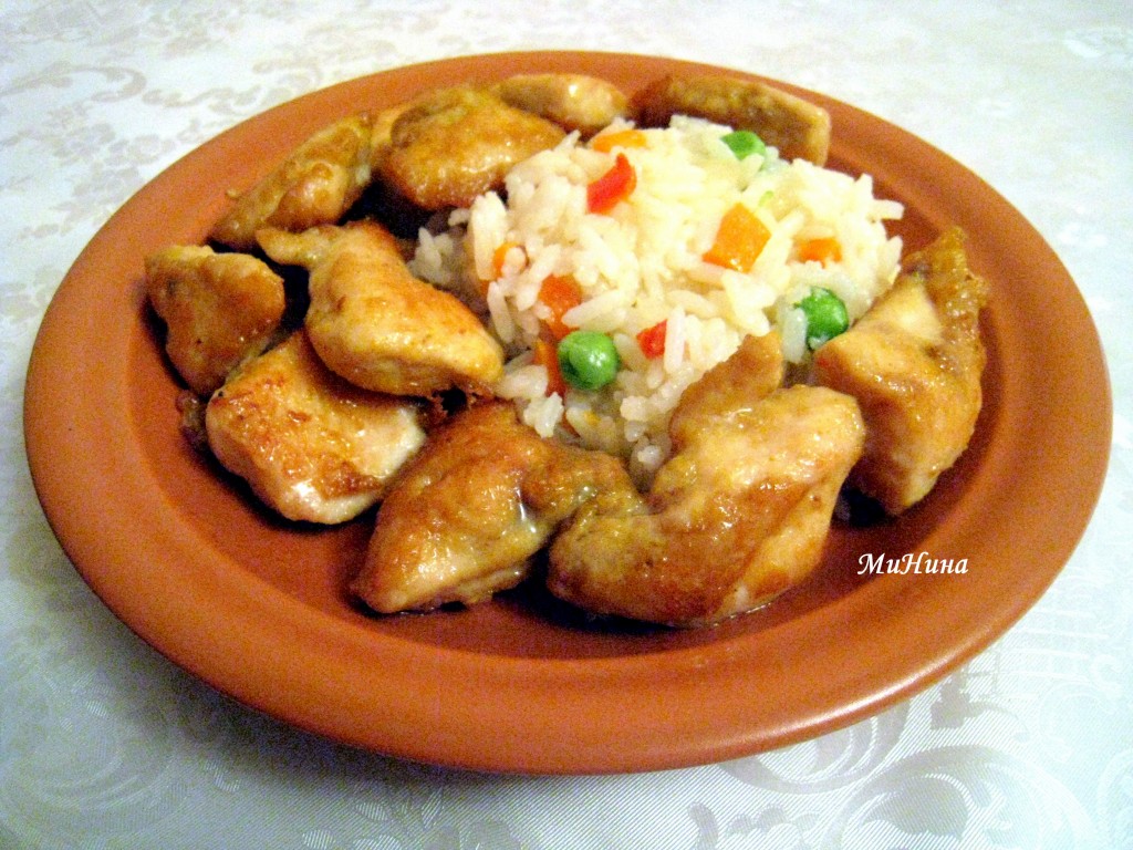 Куриные грудки в соевом соусе и рис с овощами готовы!
