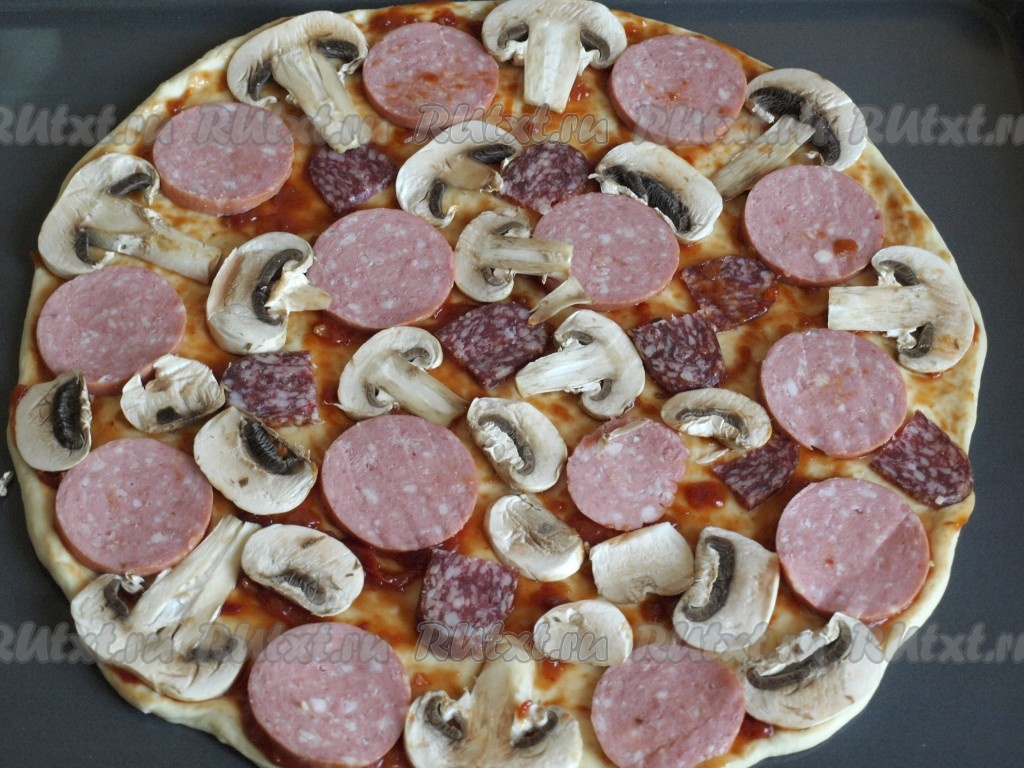 Пицца с колбасой и шампиньонами