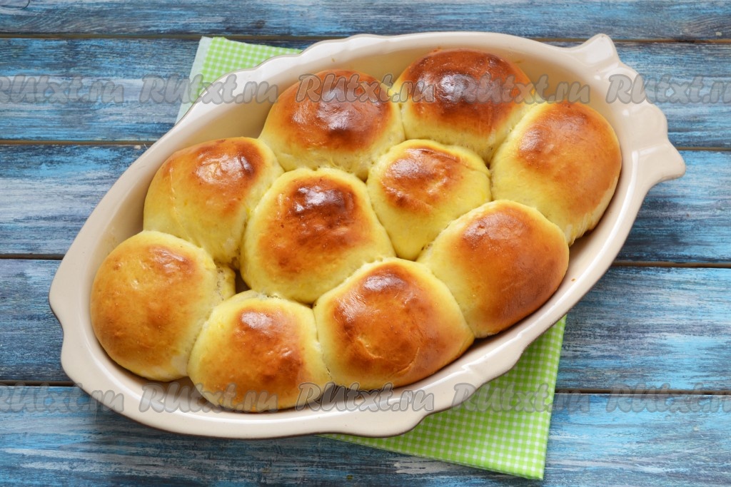 Вкусные, нежные и ароматные булочки готовы. Можно подавать к столу.