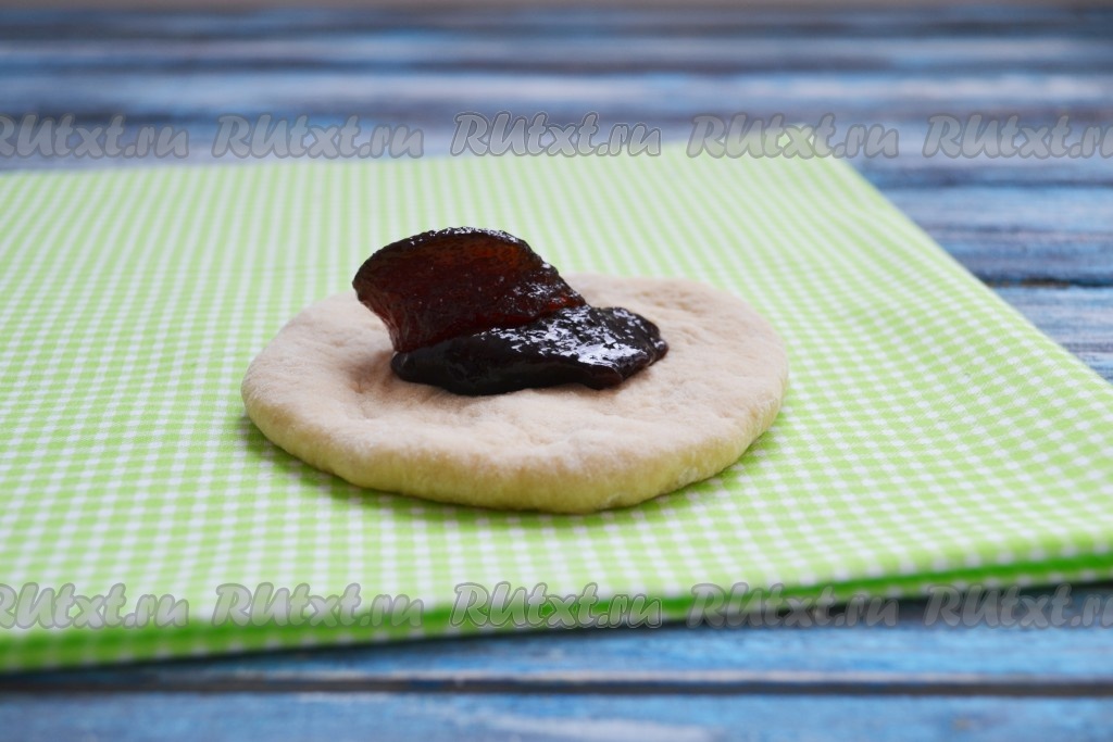 В центр каждой лепешки выложить 1 столовую ложку джема.