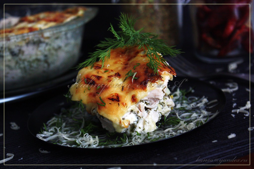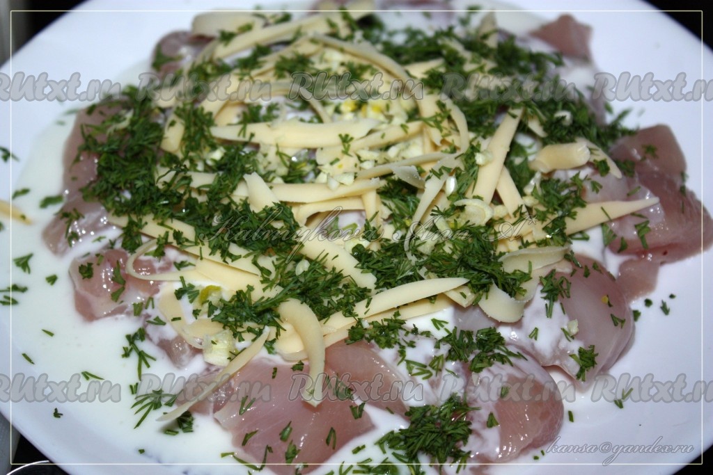 Куриное филе в кефире под сыром