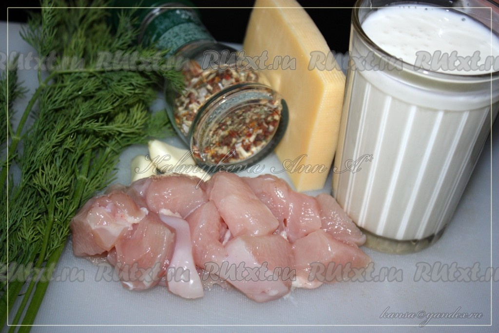 Набор продуктов для приготовления куриного филе в кефире под сыром