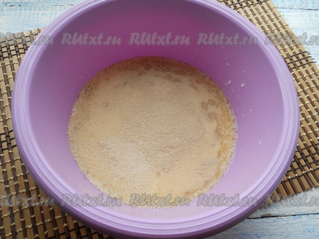 Всыпать дрожжи, перемешать все, оставить на 5 минут.