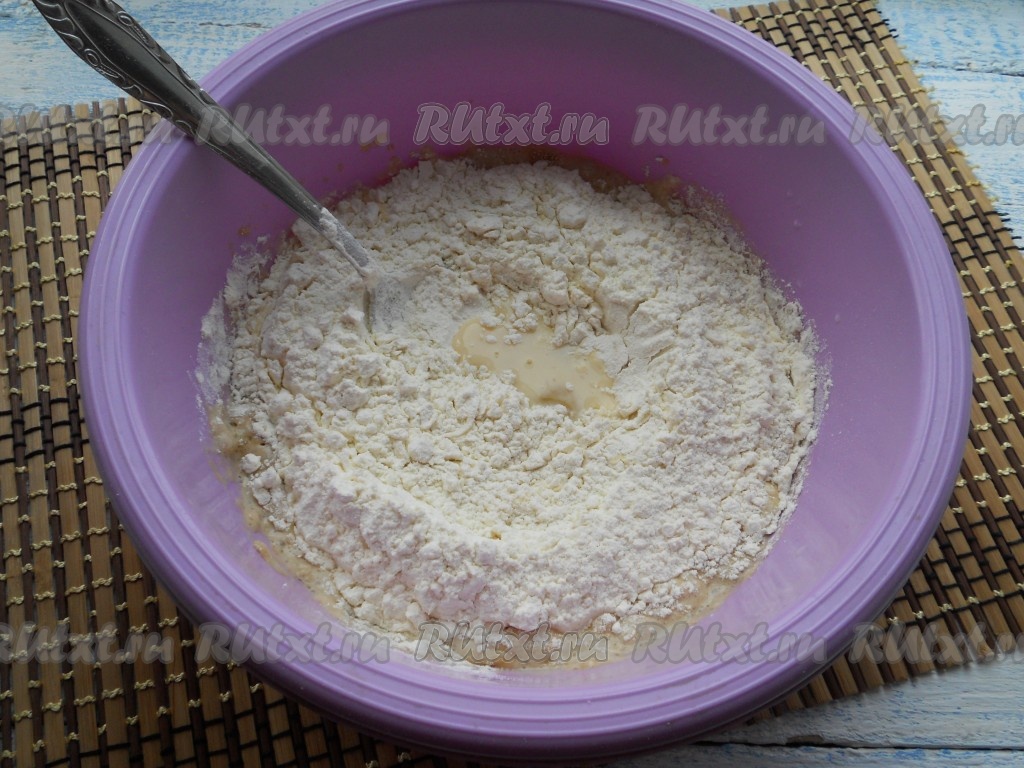 Затем всыпать просеянную муку.