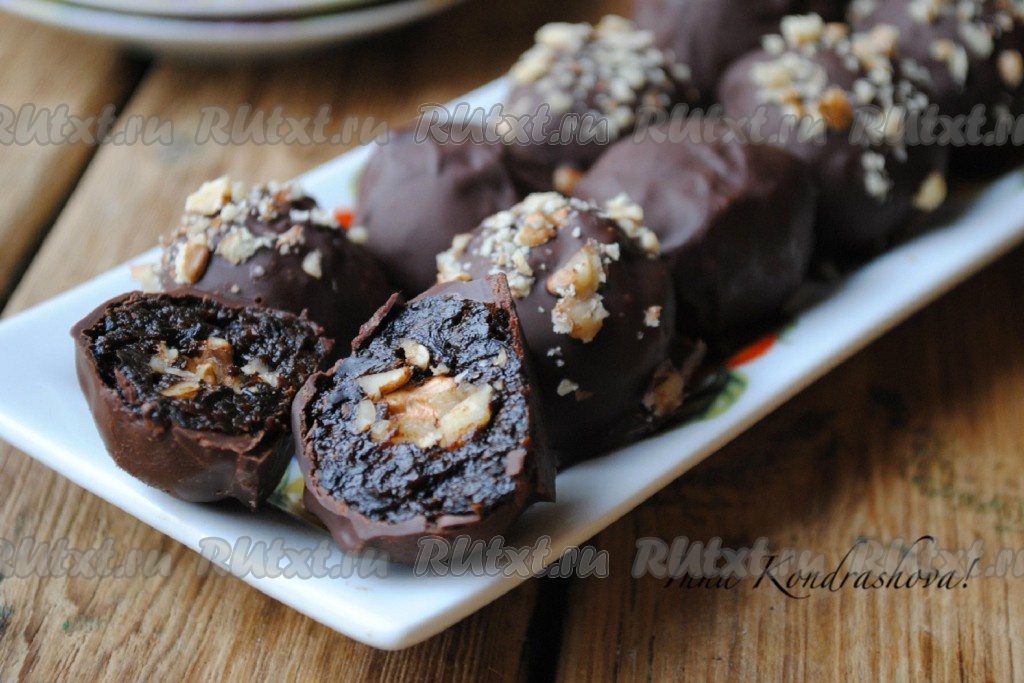 Вкусные, полезные домашние конфеты готовы. Чернослив в шоколаде станет приятным дополнением к чашечке чая или кофе.