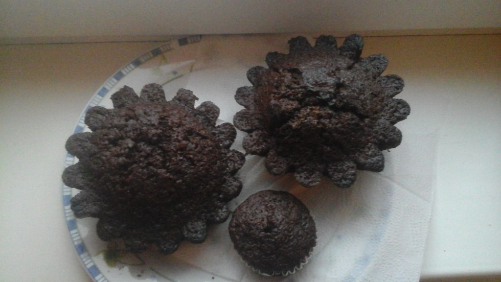 Тесто для нашей полезной выпечки разложить по формочкам и готовить в немного разогретой духовке при 200 градусах около 15 минут. Время очень зависит от свойств духовки, а также вида и высоты формочки.