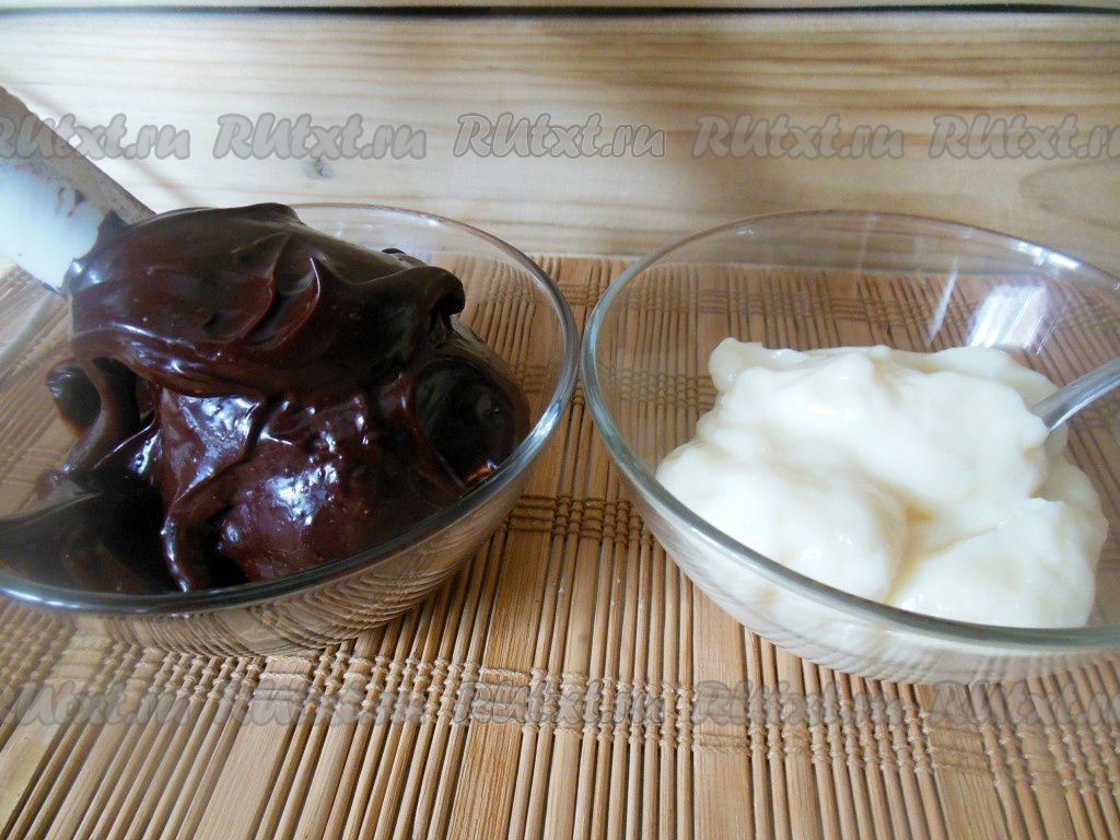 В чистую баночку выложите слоями пасту, чередуя белый и шоколадный слои, и уберите в холодильник.