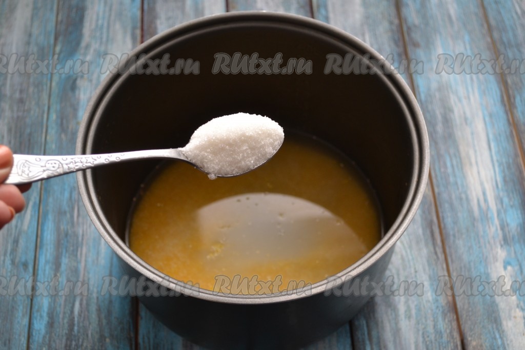 Всыпать сахар. Если не желаете сладкую кашу, всыпьте по вкусу соль.