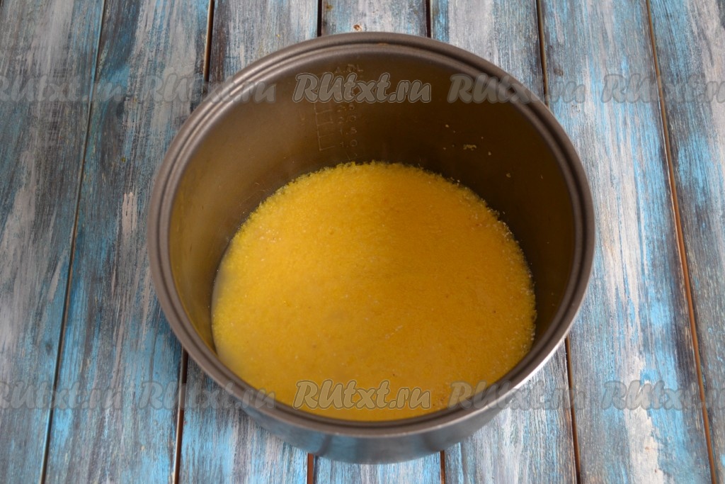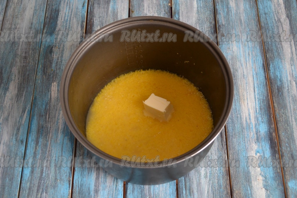 В чашу мультиварки всыпать кукурузную крупу.