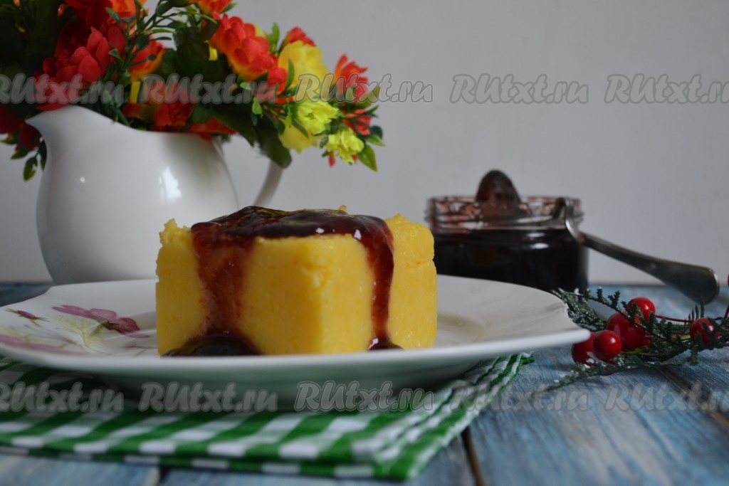 Кукурузная каша прекрасно сочетается с кисло-сладким соусом, вареньем или джемом.