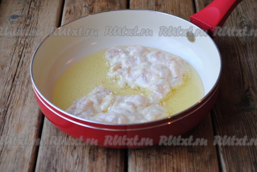 Жарить куриные рубленые котлеты на среднем огне с двух сторон до красивого, золотистого цвета (примерно по 3-4 минуты с каждой стороны). Во время жарки сковороду крышкой не накрывать.