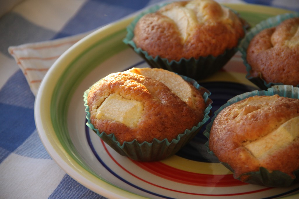 Выпекать в разогретой духовке при температуре 180 градусов около 30 минут. Готовность проверьте, проколов тесто маффинов сухой зубочисткой, если и после прокола зубочистка останется сухой, значит пришло время вынимать выпечку из духовки. Маффины с яблоками, приготовленные на кефире по этому рецепту, получаются нежными, вкусными, тающими во рту.