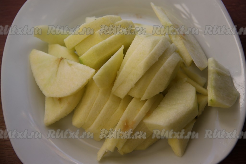 Яблоки очистить от кожуры и нарезать дольками.