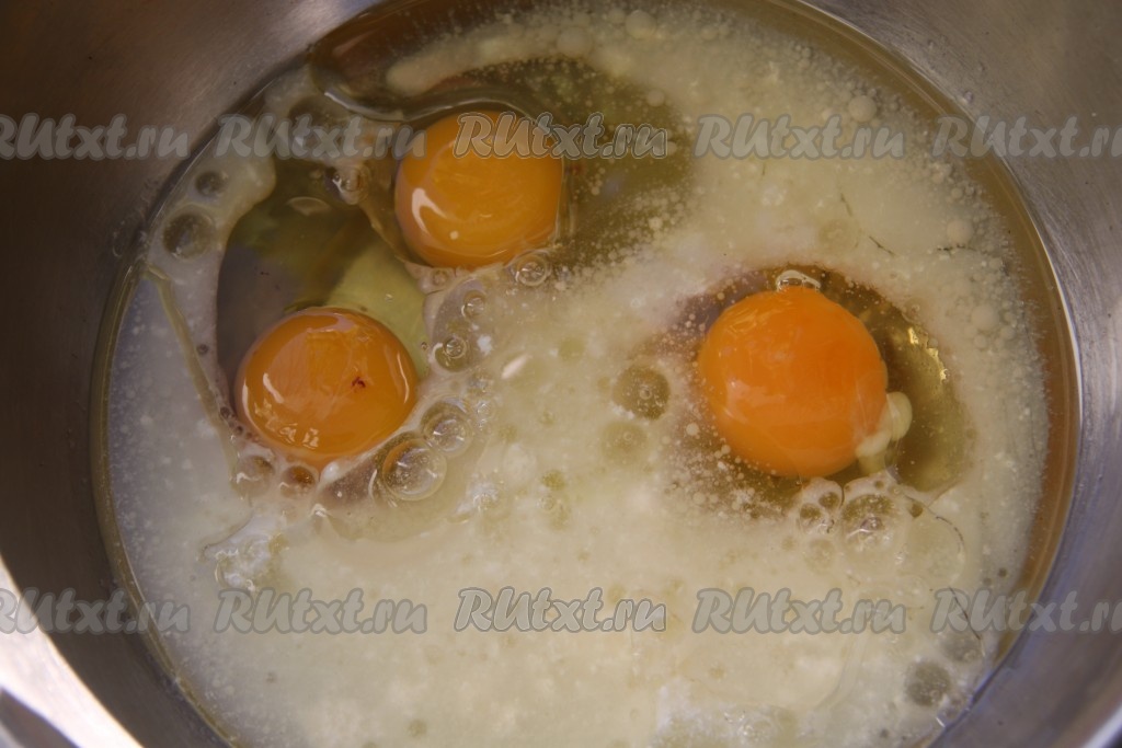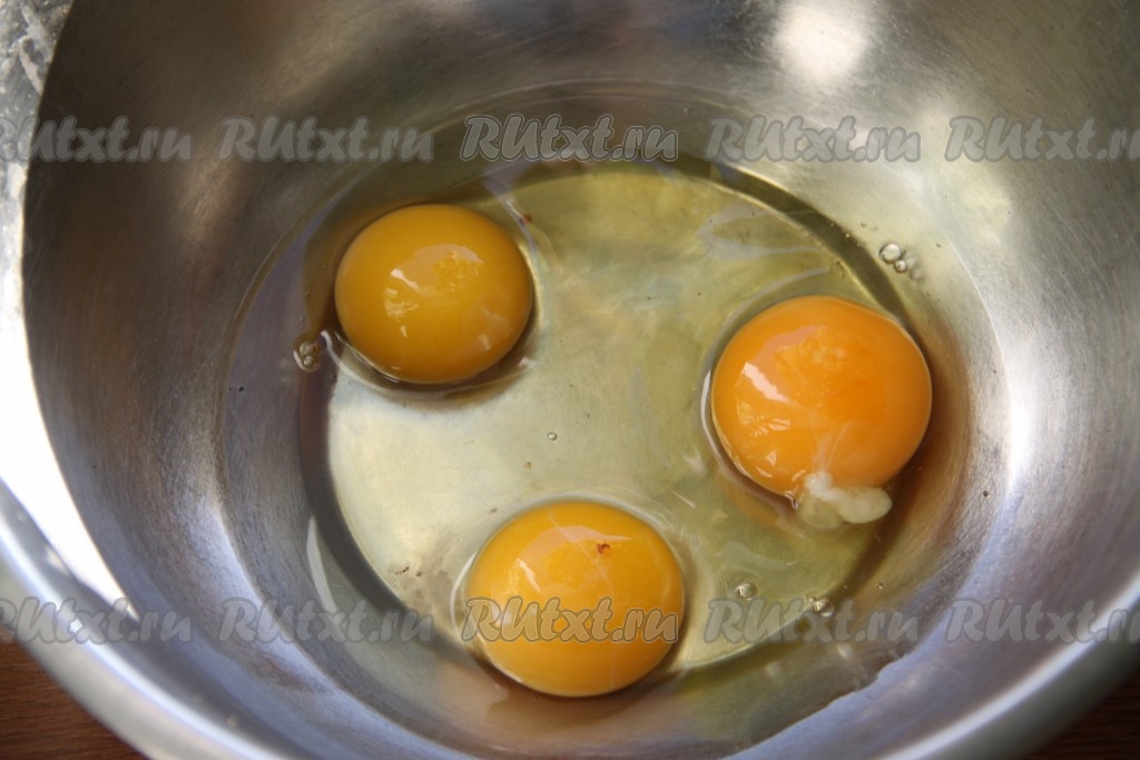Яйца вбить в миску.