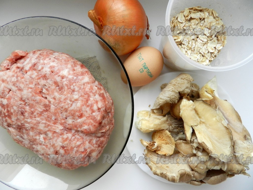 Котлеты с грибами - вкусное и питательное блюдо. Обычно в котлеты добавляют булку, но в этом рецепте хлеб заменен на овсяные хлопья, это делает котлетки мягче и полезнее. А с добавлением начинки привычное блюдо становится ещё и оригинальным.