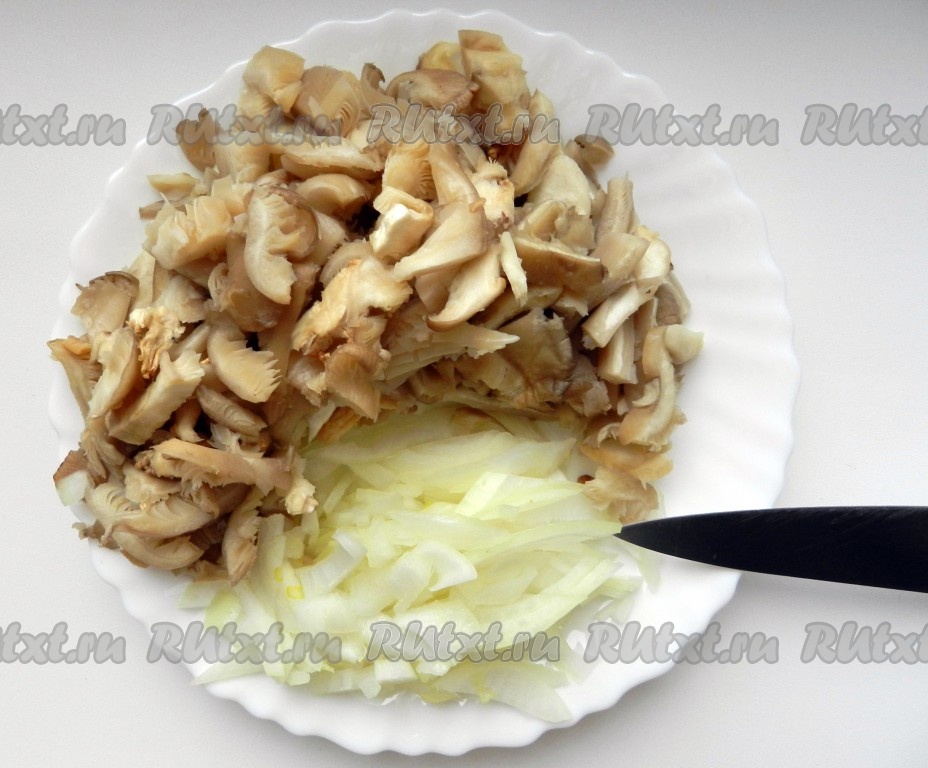 Вешенки и половинку луковицы нарезать.