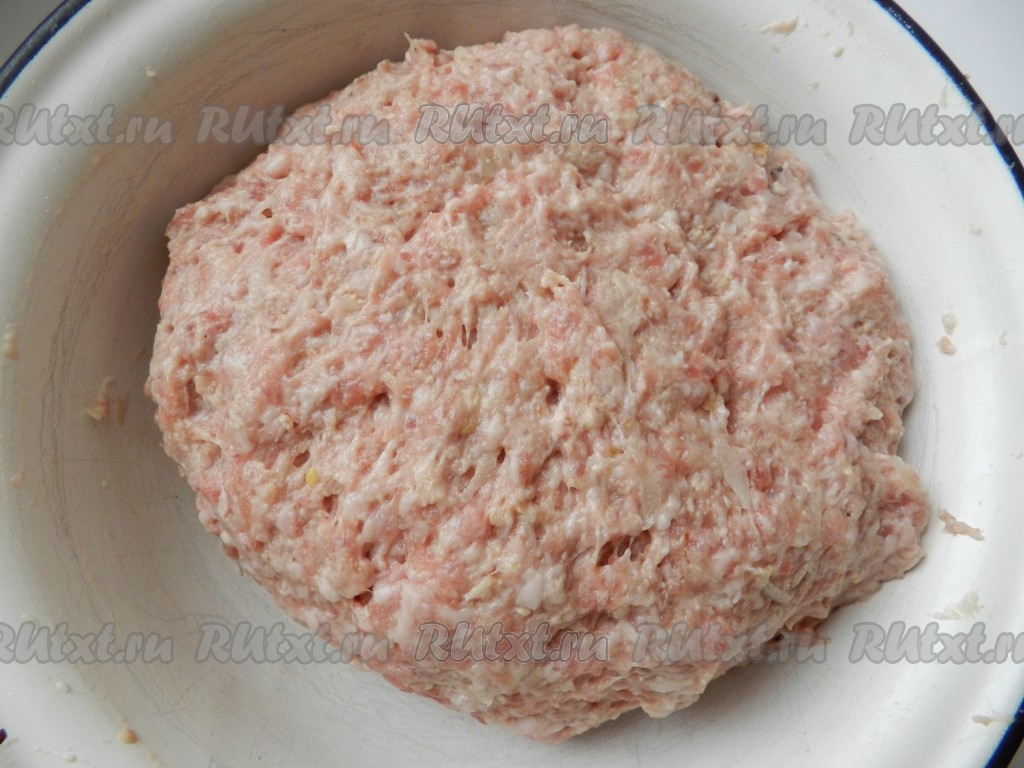 Тщательно вымесить фарш руками.