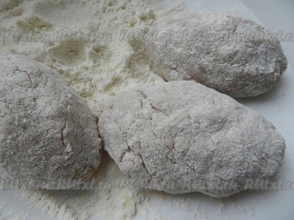 На тарелку насыпать муку и панировать котлеты.