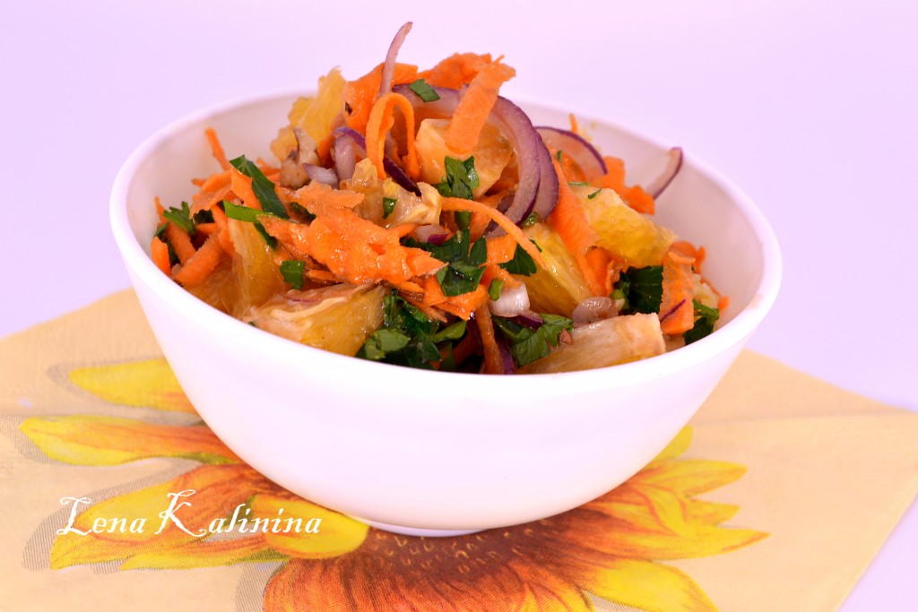 Поздней осенью и зимой салат из моркови и апельсина очень актуален. Яркий, сочный, витаминный салатик порадует вас своим вкусом. Продукты все доступные, готовится просто. Этот салат понравится и тем, кто придерживается правильного питания или диеты. Попробуйте!
