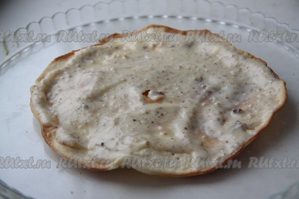 Для приготовления коржей нужно холодное сливочное масло натереть на терке и смешать с сахаром, холодной водой, солью и мукой. Замесить однородное и мягкое тесто, которое не должно липнуть к рукам. Готовое тесто отправить в холодильник на 1 час.
