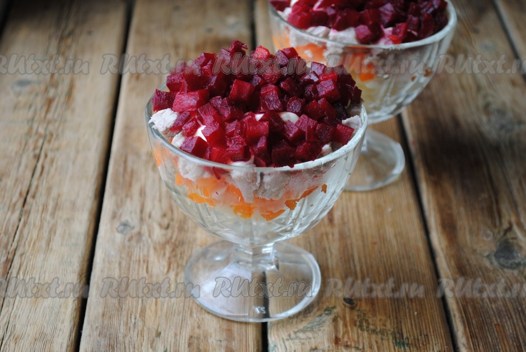 Хочу предложить Вашему вниманию простой, но очень вкусный салат со свининой и свеклой. Такой салатик можно подать и на праздничный, и на повседневный стол. Готовится он из простых ингредиентов, которые отлично сочетаются между собой.