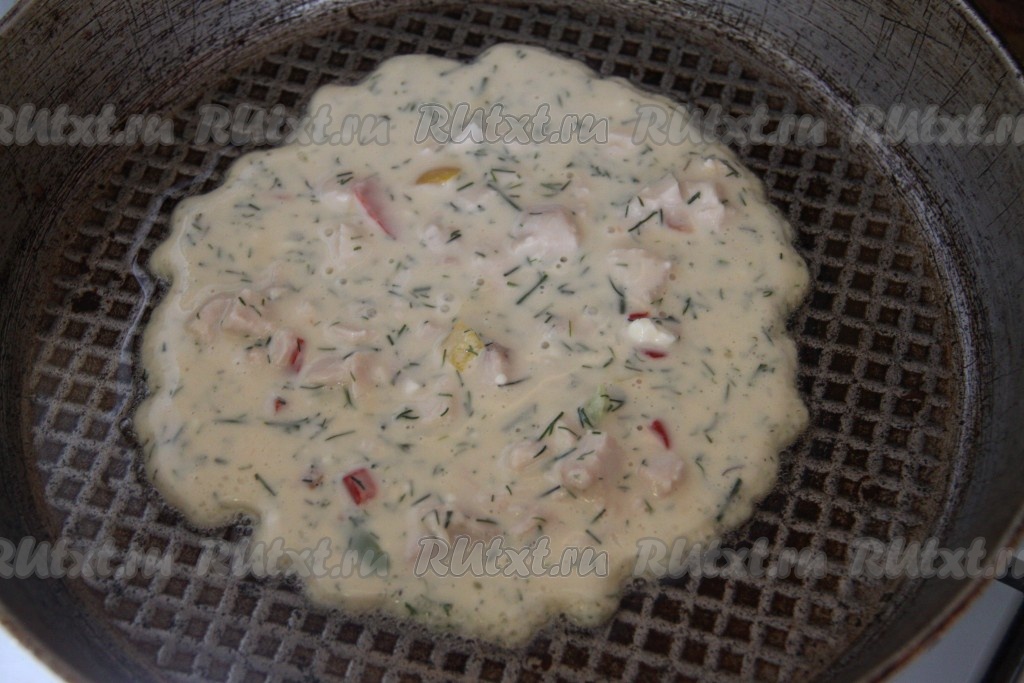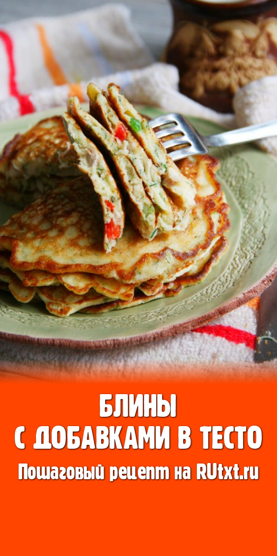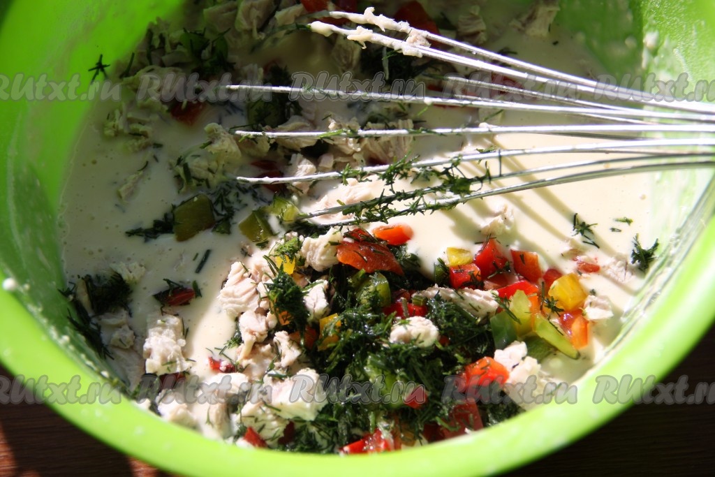 В блинное тесто добавить подготовленную начинку и перемешать.
