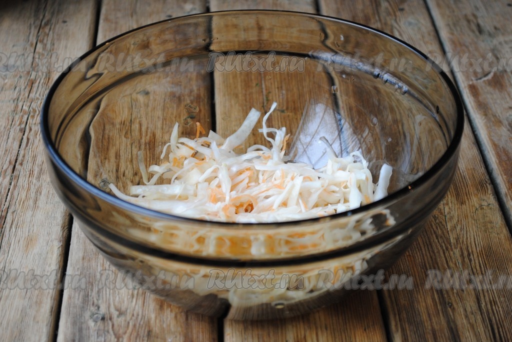 В миску поместить квашеную капусту.