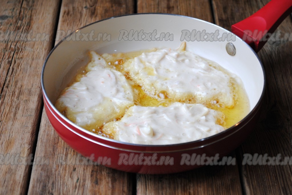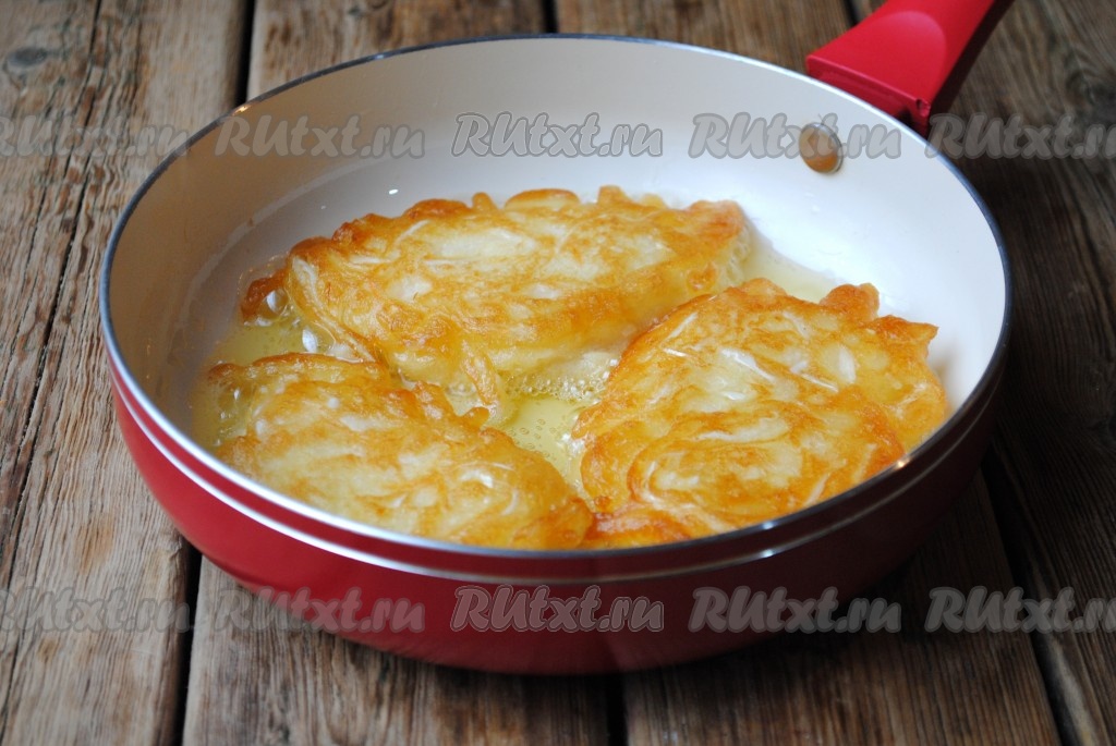 Сковороду с растительным маслом отправить на огонь, хорошо разогреть, выложить тесто столовой ложкой, формируя небольшие оладьи.