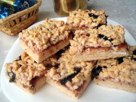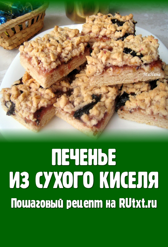 Затем получившийся пласт нарезать на кусочки. Тёртое печенье, приготовленное с добавлением сухого киселя и варенья, получается аппетитным, очень вкусным, просто тающим во рту, попробуйте!