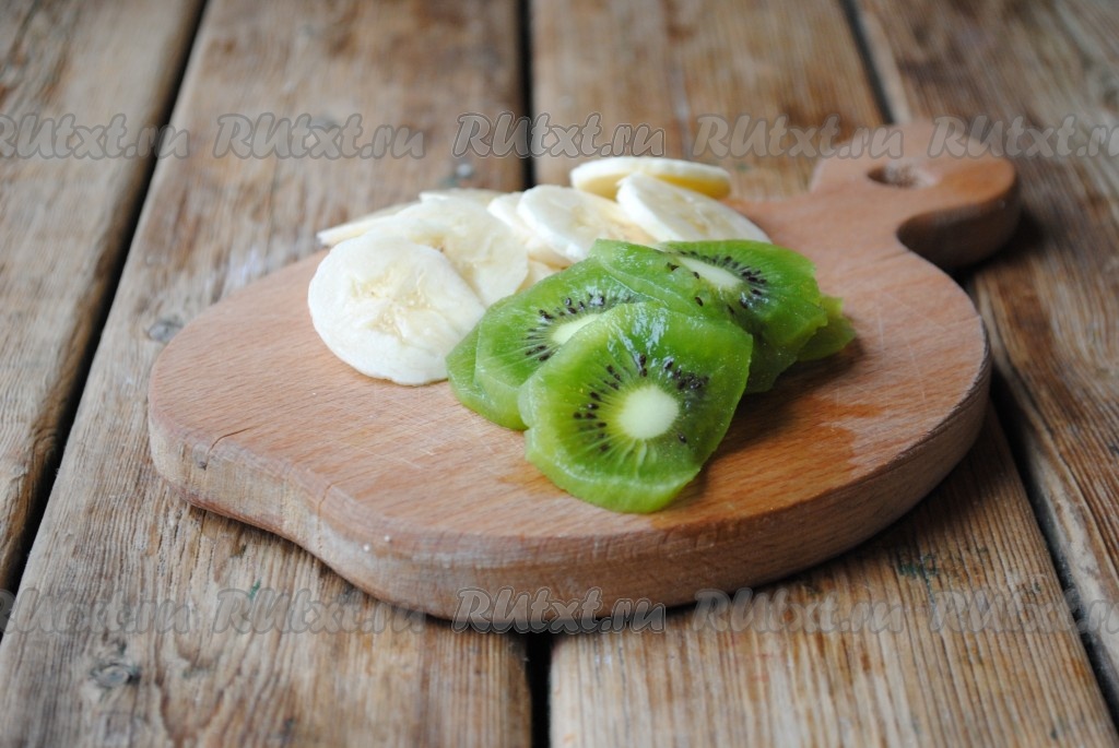 Банан и киви очистить, нарезать тонкими кружочками.