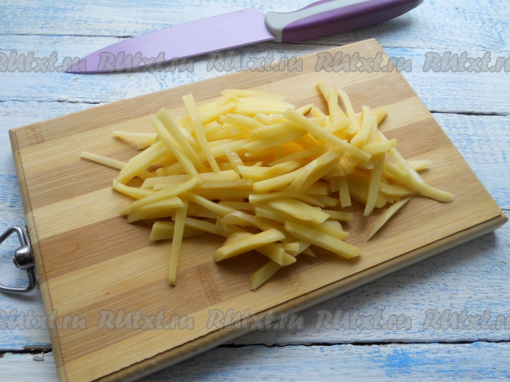 Картофель очистить и нарезать соломкой.