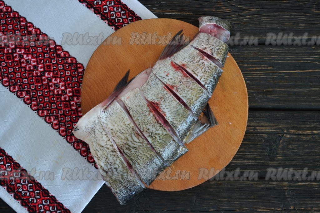Очистить рыбу от чешуи, отрезать голову и хвост (выбрасывать их не стоит, можно использовать для приготовления других блюд, например, ухи или рыбного супа), удалить внутренности и тщательно вымыть. Особое внимание следует уделить удалению черной пленки внутри рыбы - ее не должно быть, иначе блюдо в результате будет горчить. Разрезать рыбку на порционные кусочки шириной, примерно, по 1,5-2 см.