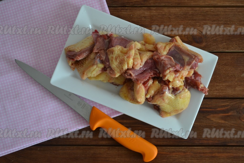 Утку вымыть и нарезать небольшими кусочками. Если не желаете видеть в плове косточки - срежьте мякоть и используйте только её. Утиный жир срезать с мяса.