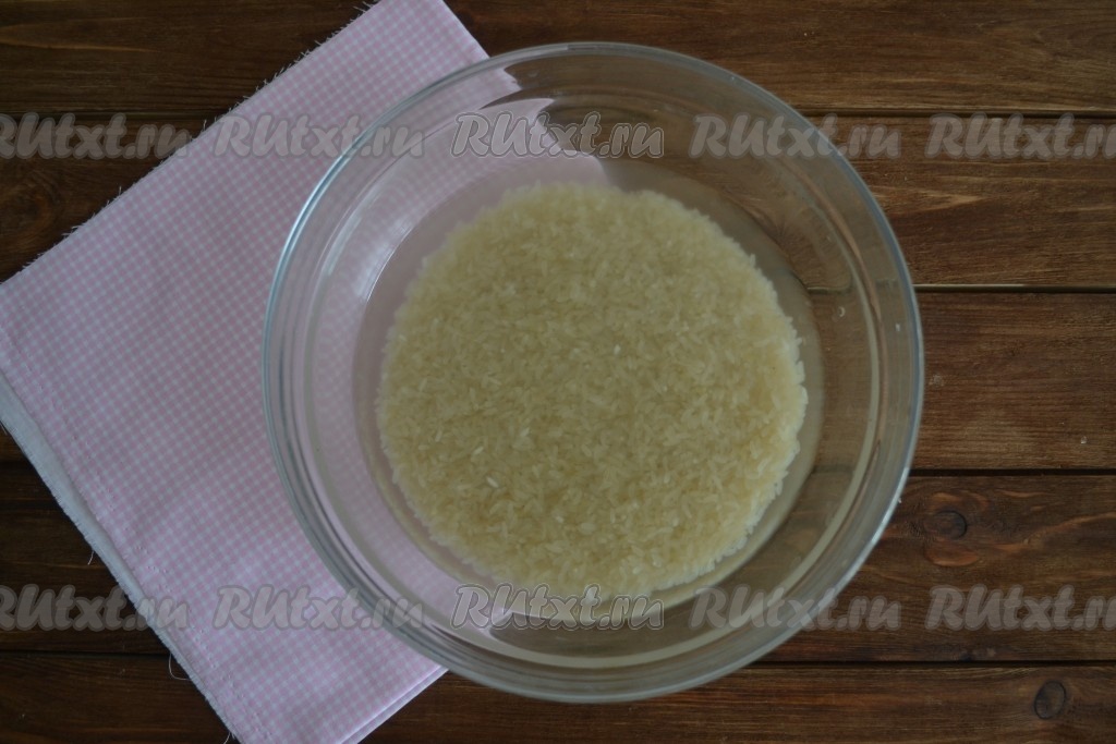 В это время промыть рис, 4-6 раз меняя воду, пока вода не останется полностью прозрачной.