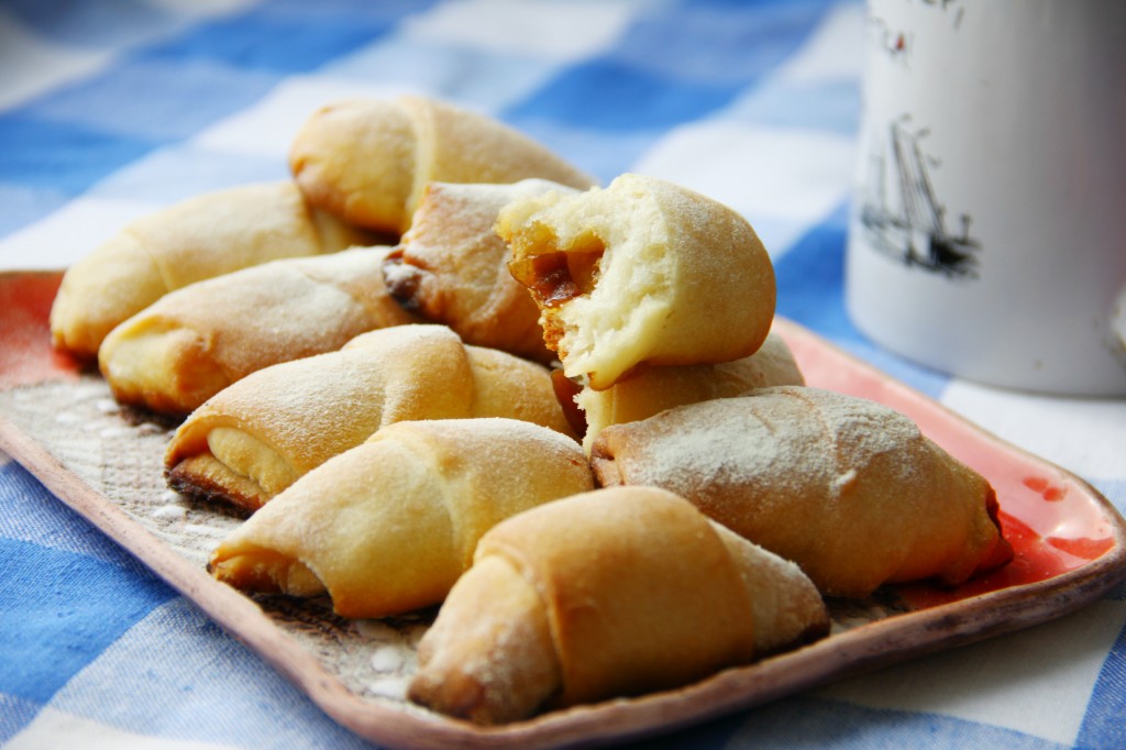 Постные рогалики с повидлом на дрожжах