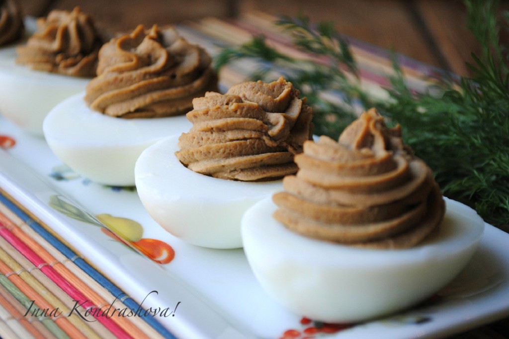 Фаршированные яйца - это прекрасное блюдо, которое можно приготовить и на праздник, и для повседневной трапезы. Вкус фаршированных яиц определяется вкусом начинки. Яйца можно нафаршировать мясом, рыбой, грибами, морепродуктами и так далее. Сегодня хочу поделиться рецептом яиц, фаршированных печенью. Печень можно использовать куриную, утиную или гусиную. Закуска получается очень вкусной и нарядной. Попробуйте!