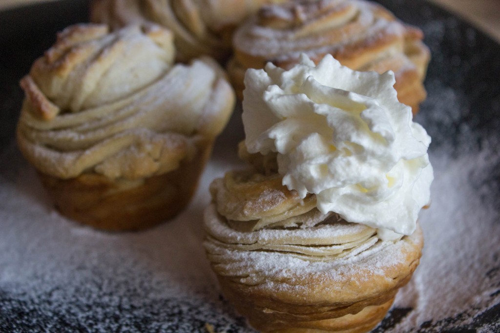 Получаются очень нежные сдобные булочки, которые легко разделяются на слои. Краффины можно посыпать сахарной пудрой или же начинить джемом, другими жидкими начинками с помощью кондитерского шприца. Благодаря слоёной структуре, эти булочки отлично заполняются.