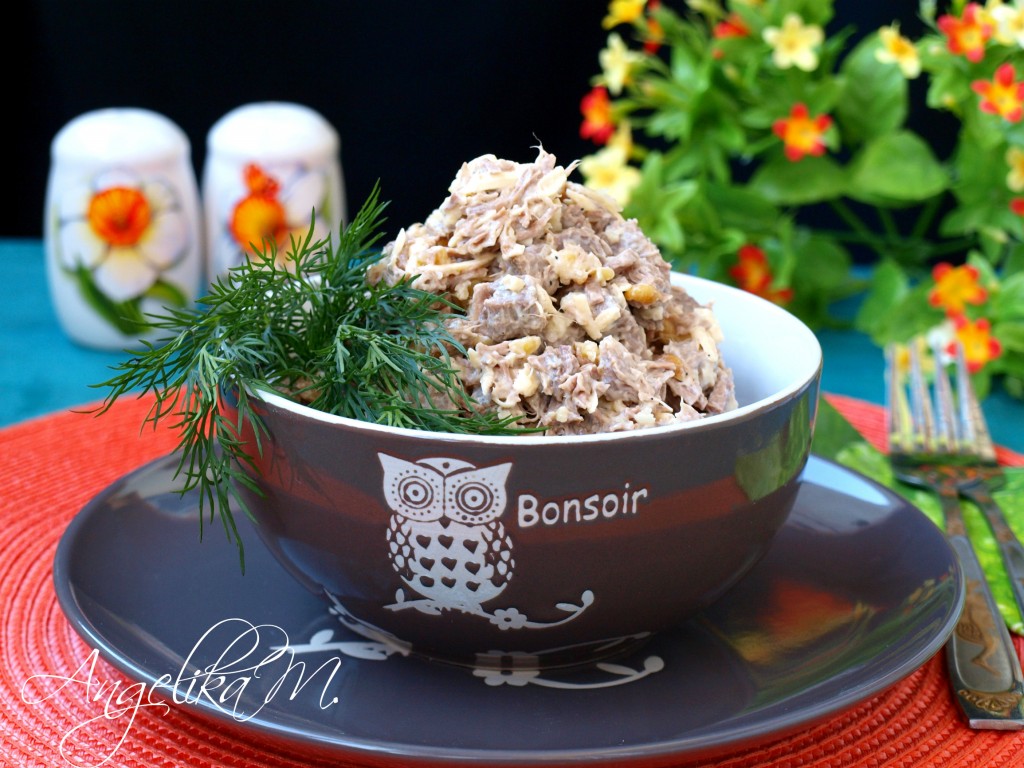 Салат с говядиной и грецкими орехами особенно понравится сильному полу. Кто, как не мужчины, любят, чтобы мяса было "побольше". Этот вкусный мясной салат вас точно не разочарует, он будет прекрасно сочетаться с любым гарниром. Очень пикантно и главное - сытно!