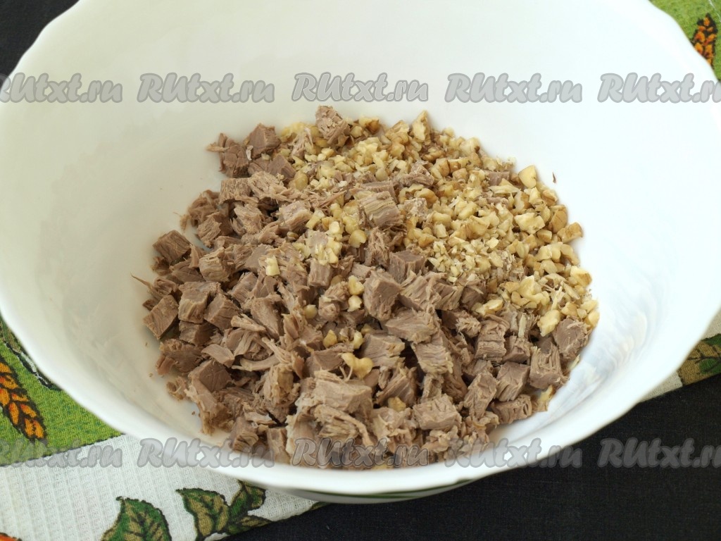 Для приготовления салата с говядиной и грецкими орехами нам понадобится: