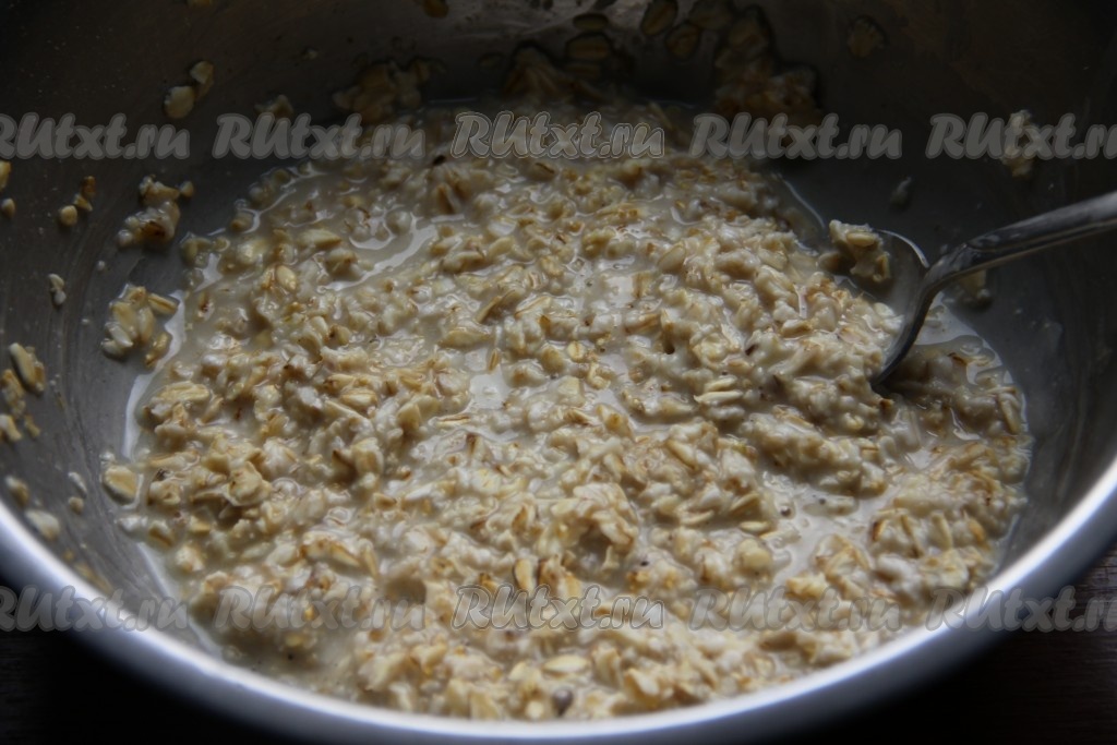 Овсяные хлопья заливаем кипятком и оставляем на 1 час.