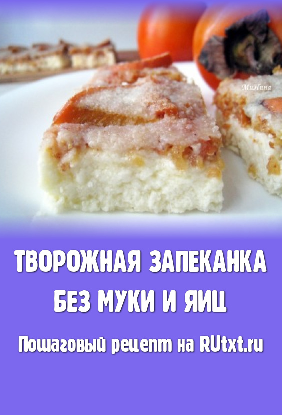 Творожные запеканки бывают самые разные и сами по себе очень полезны. Предлагаю рецепт наивкуснейшей творожной запеканки, приготовленной без муки и яиц. Особенность этой выпечки - начинка из фруктов. Я готовила с хурмой, но её можно заменить другими сезонными фруктами, например, персиками, да и варенье будет гармонично сочетаться с творогом. Главное, в зависимости от сладости фруктов, регулировать количество сахара в начинке.