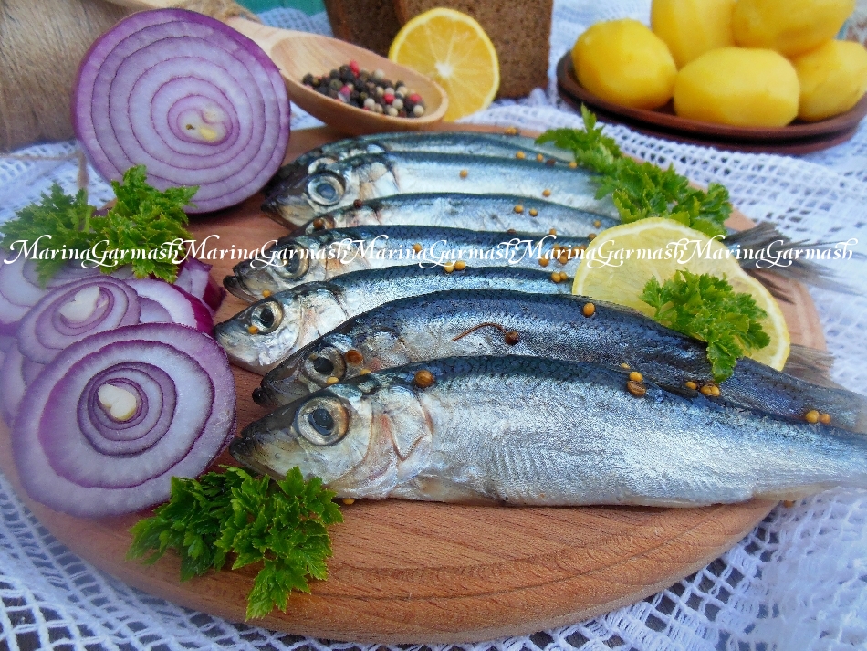 Вкусную салаку пряного посола, приготовленную в домашних условиях, уже к обеду можно подать к столу.